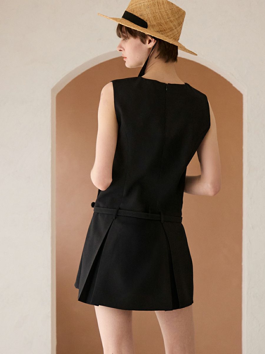 LINEN-LIKE SHORT ALL-IN-ONE(BLACK)