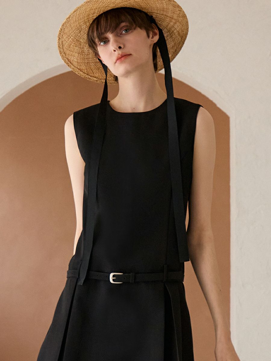 共生地の細ベルトセットでウエストマークでスタイルアップ効果も。