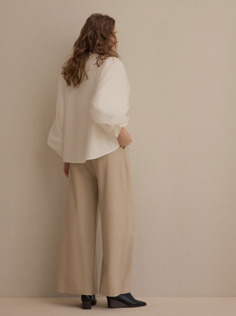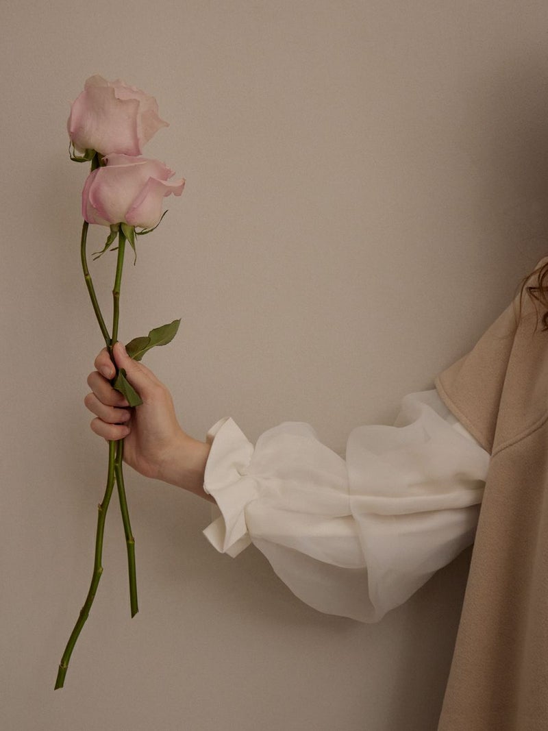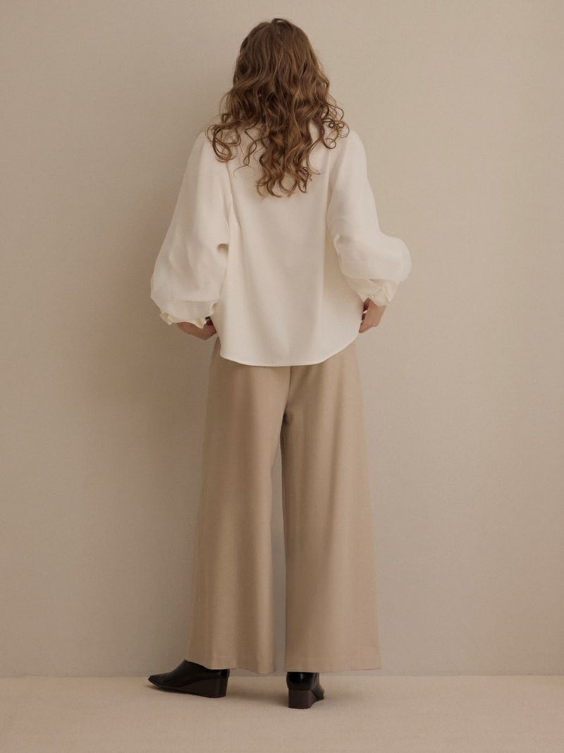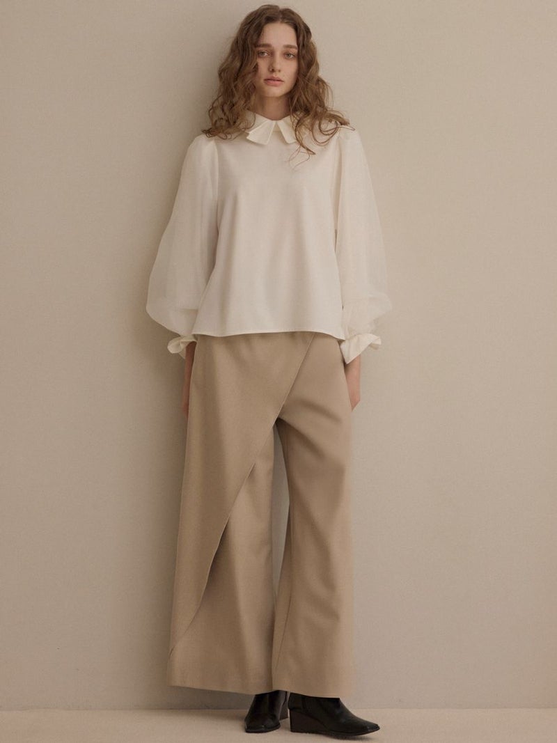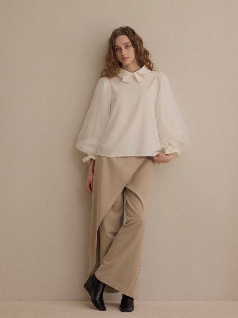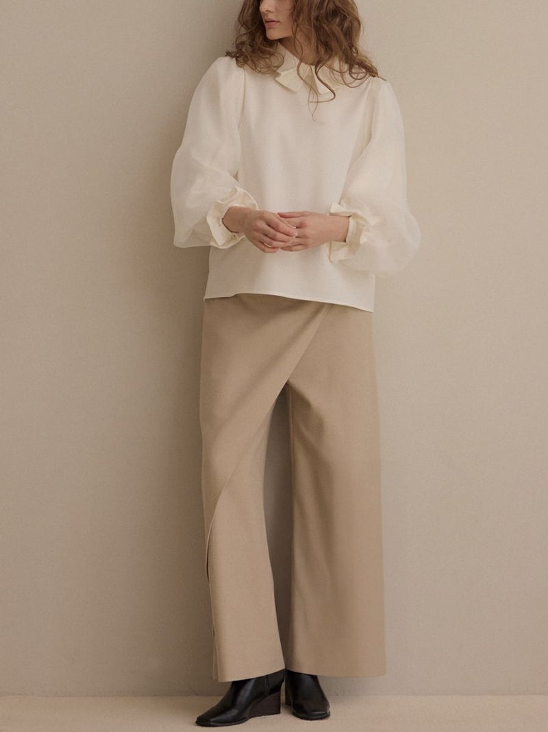 袖口をゴム仕様にし、ふんわりとしたパフスリーブのボリュームをプラス。