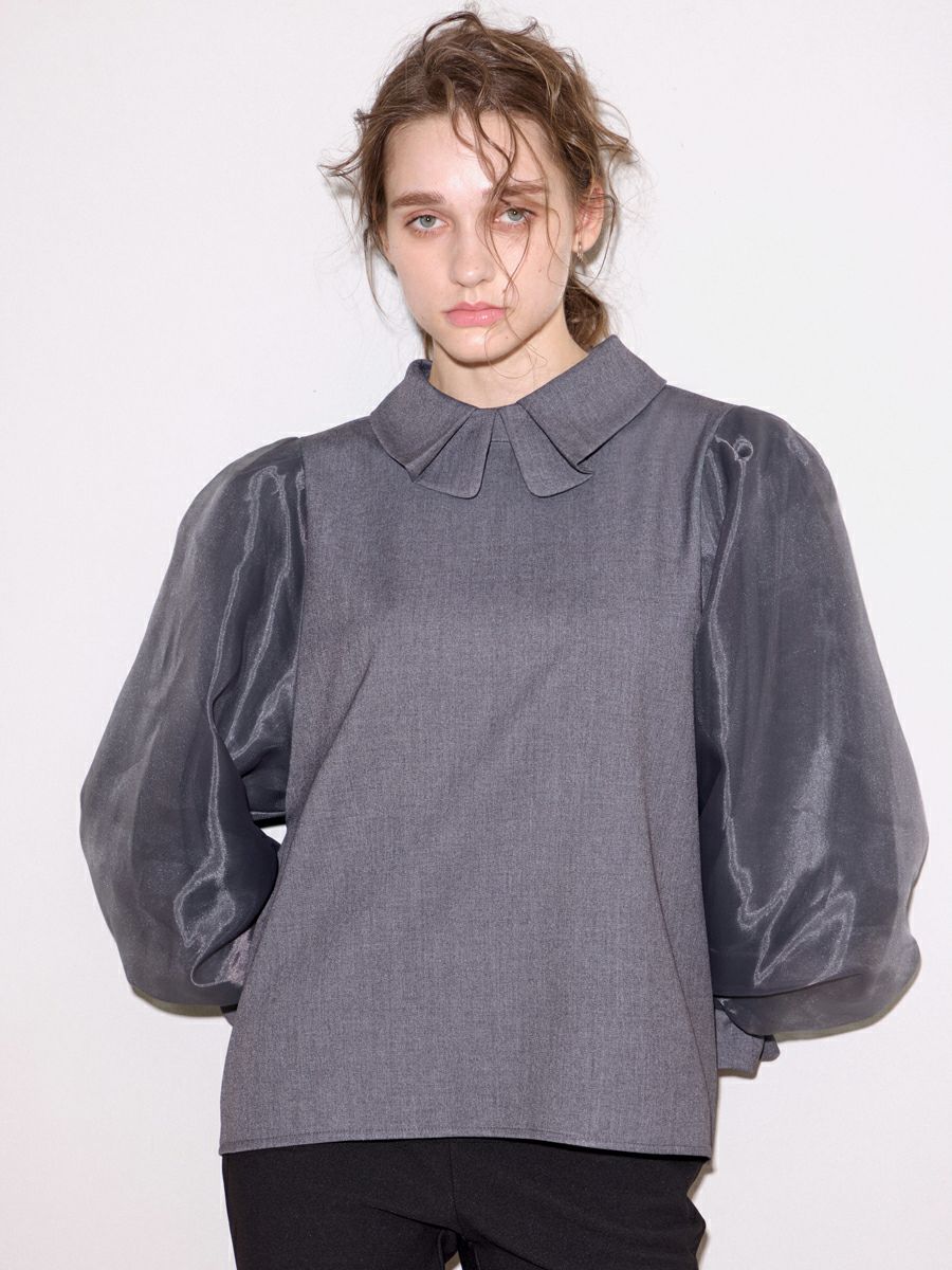 袖口をゴム仕様にし、ふんわりとしたパフスリーブのボリュームをプラス。