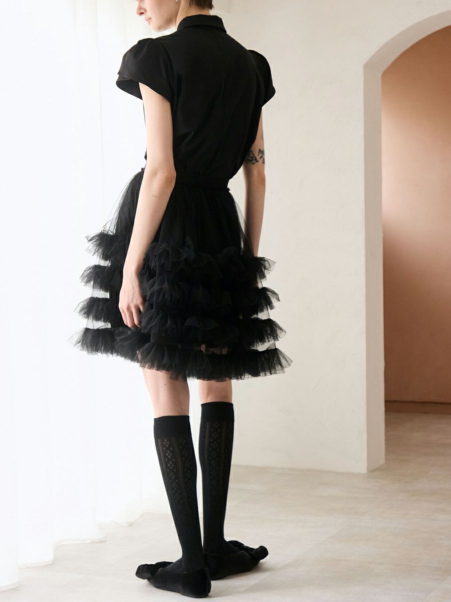 SHEER SHAGGY LACE SKIRT(BLACK)
