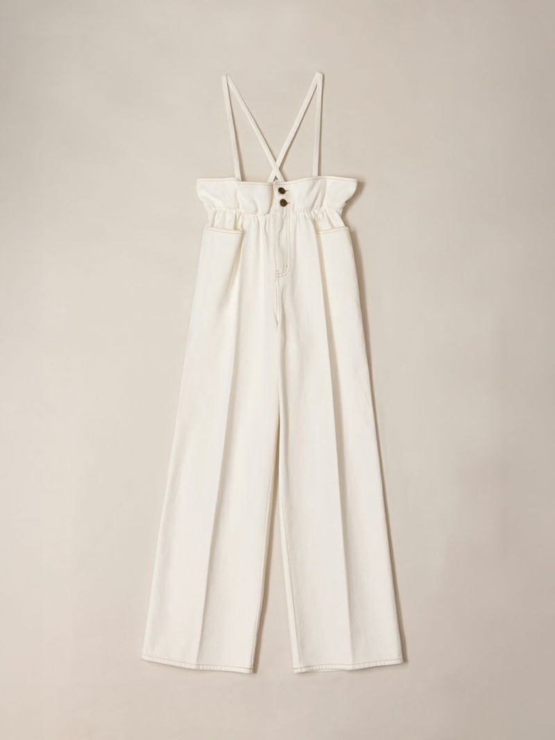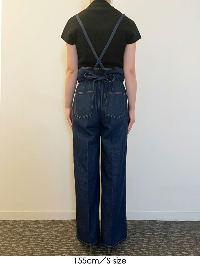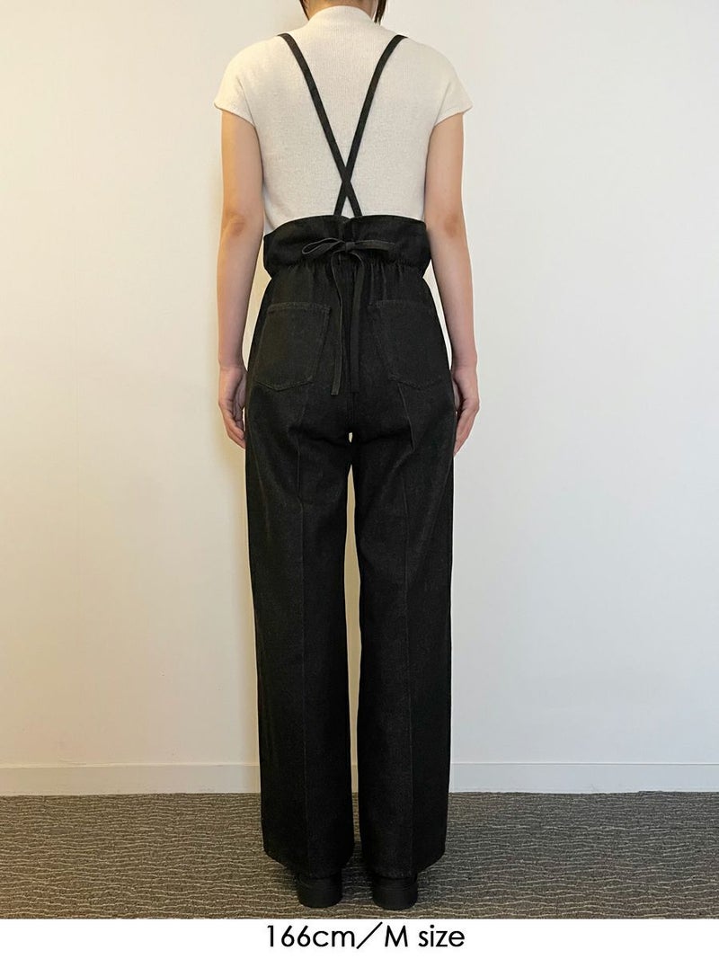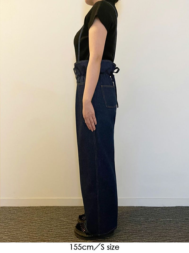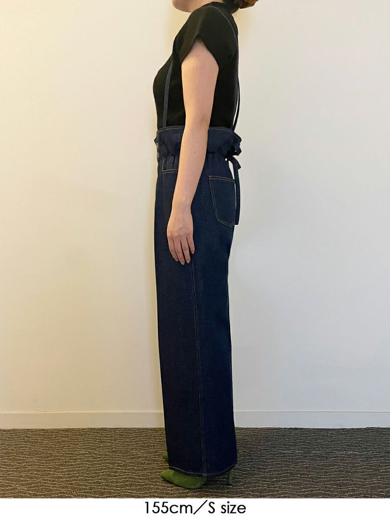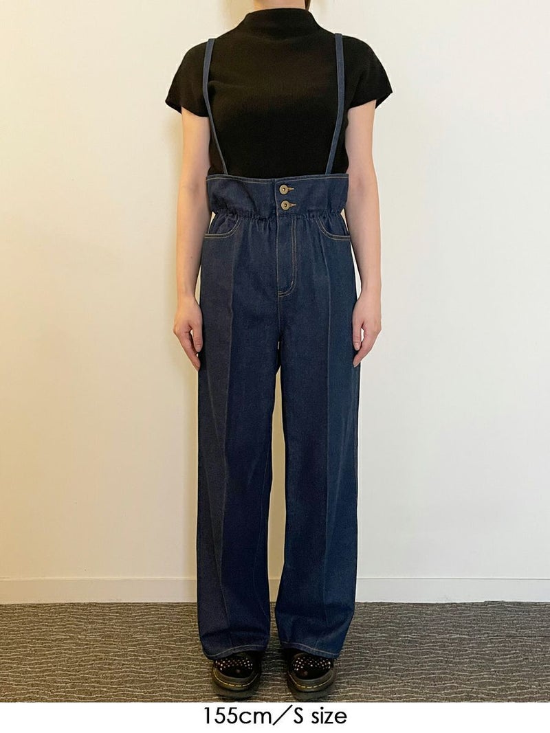 360度かわいい、美脚ラインのサスペンダーワイドデニムパンツ。