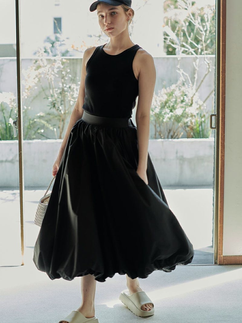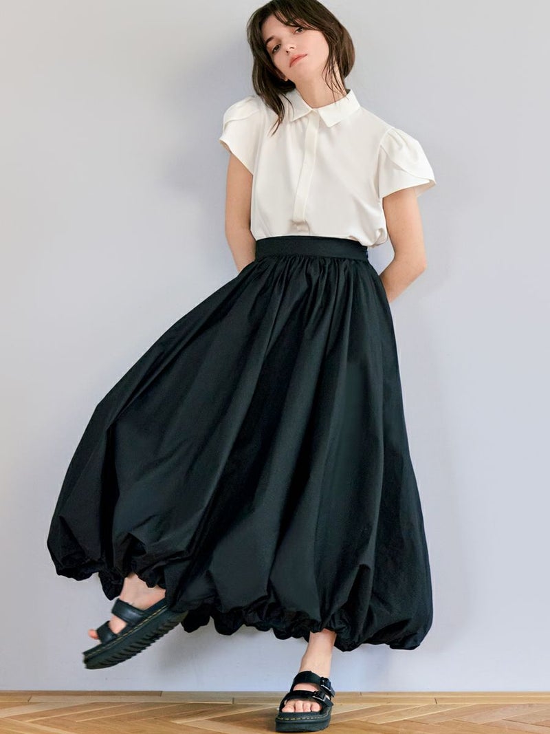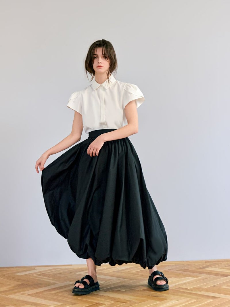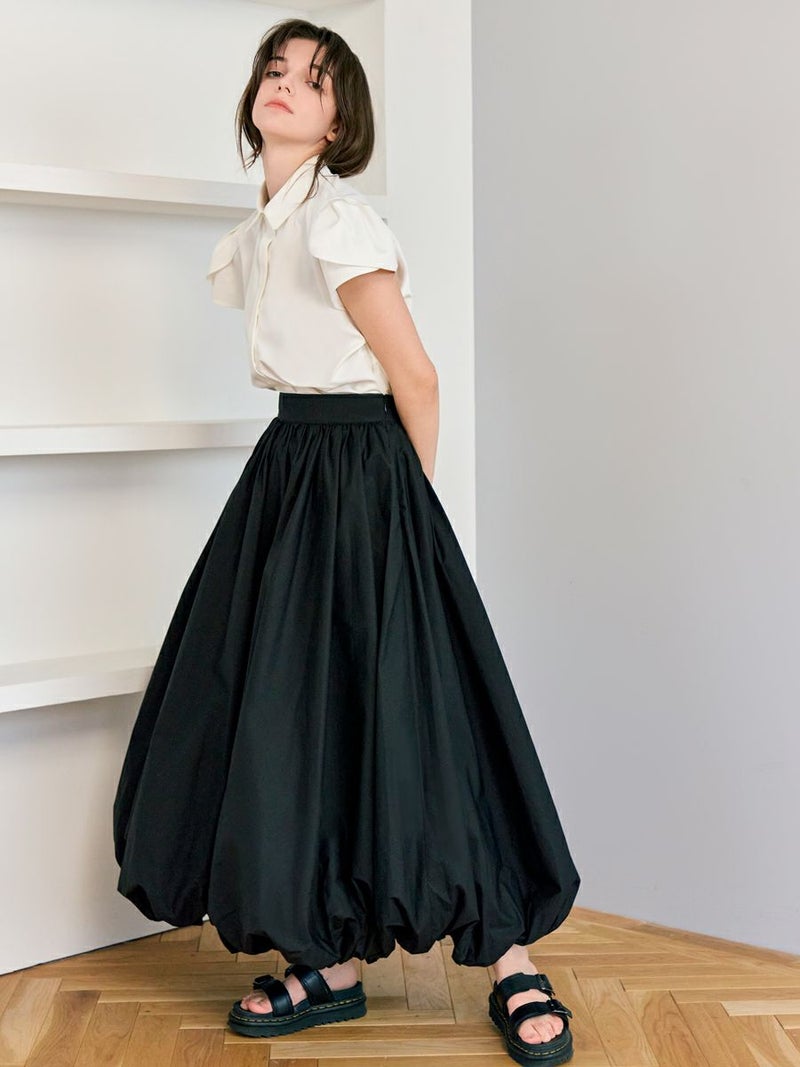 丸みのあるボリュームたっぷりなギャザーバルーンスカート。