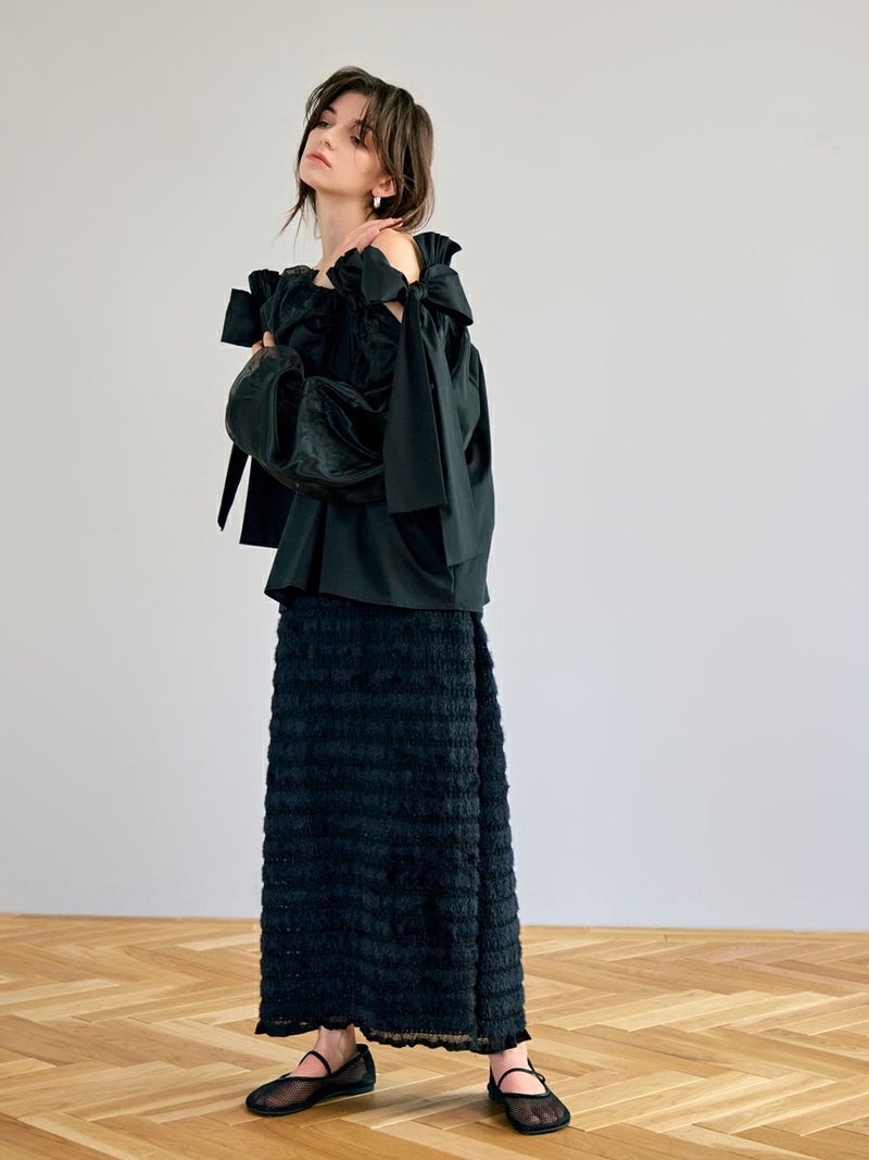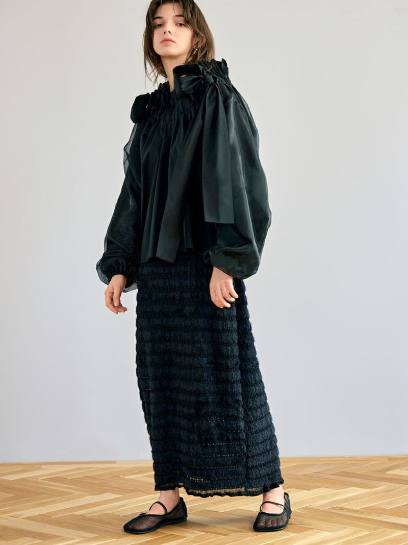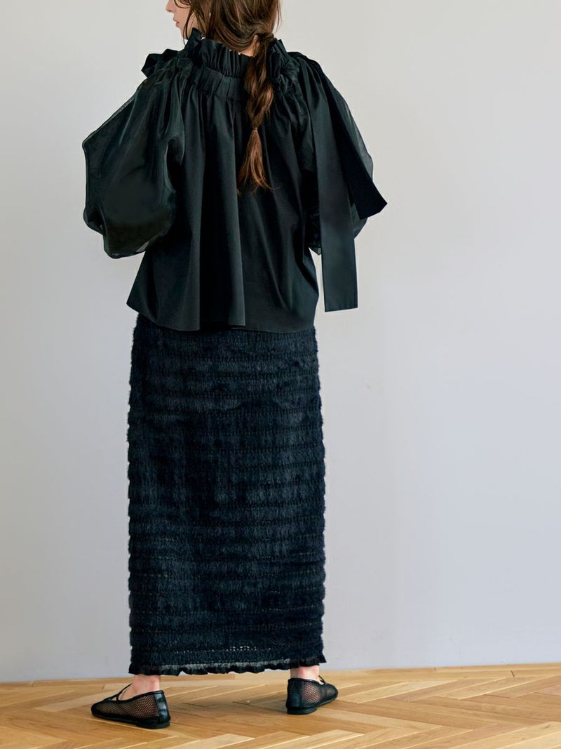 SHEER SHAGGY LACE SKIRT(BLACK)