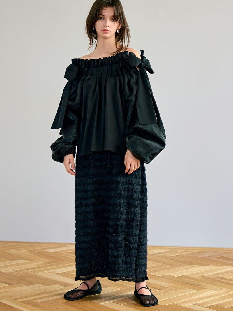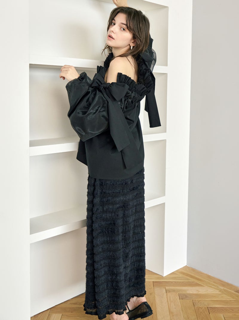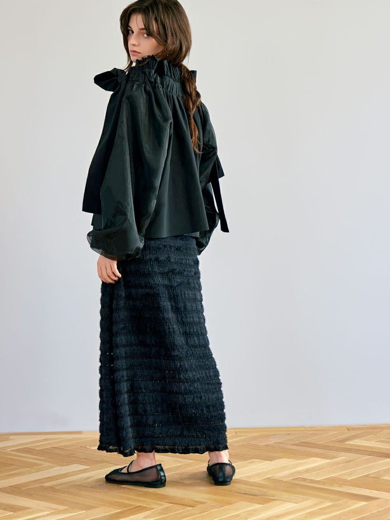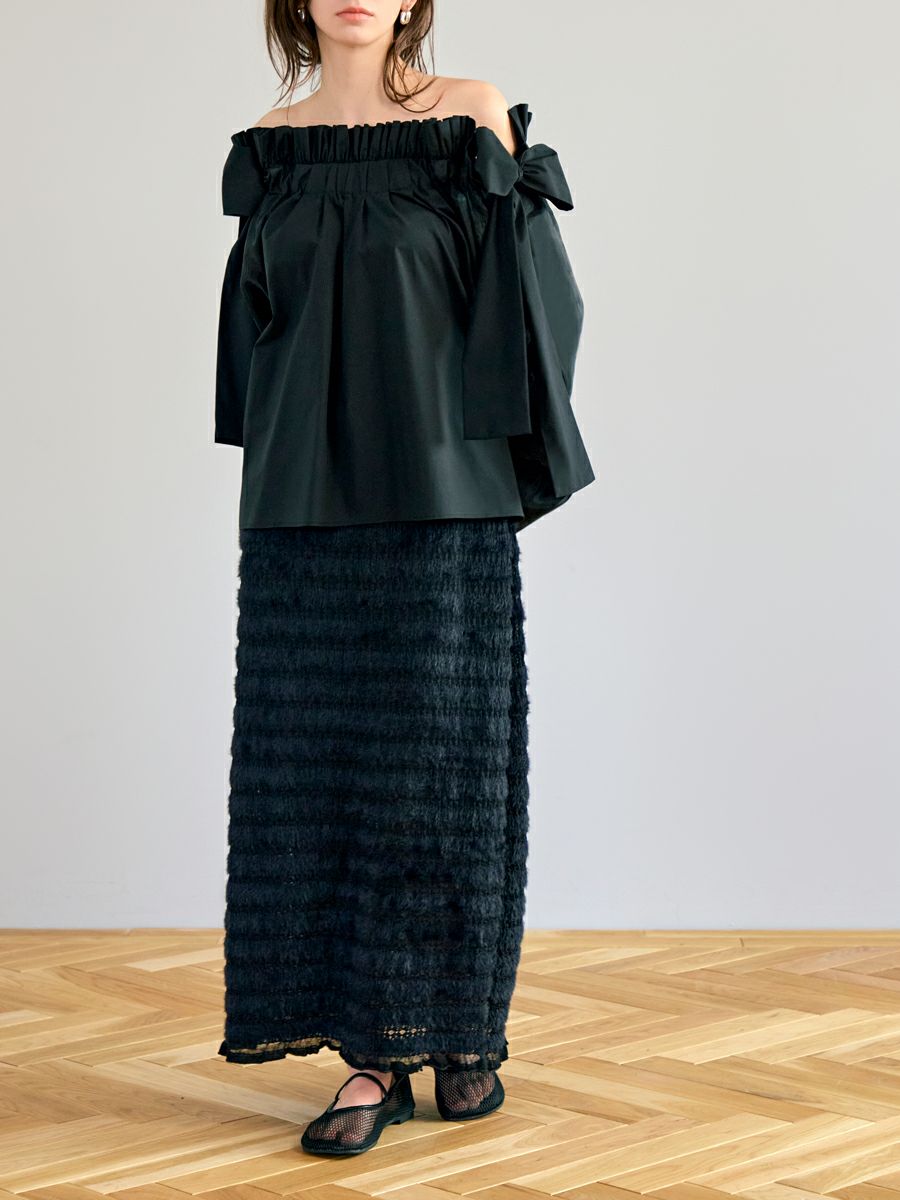 SHEER SHAGGY LACE SKIRT(BLACK)