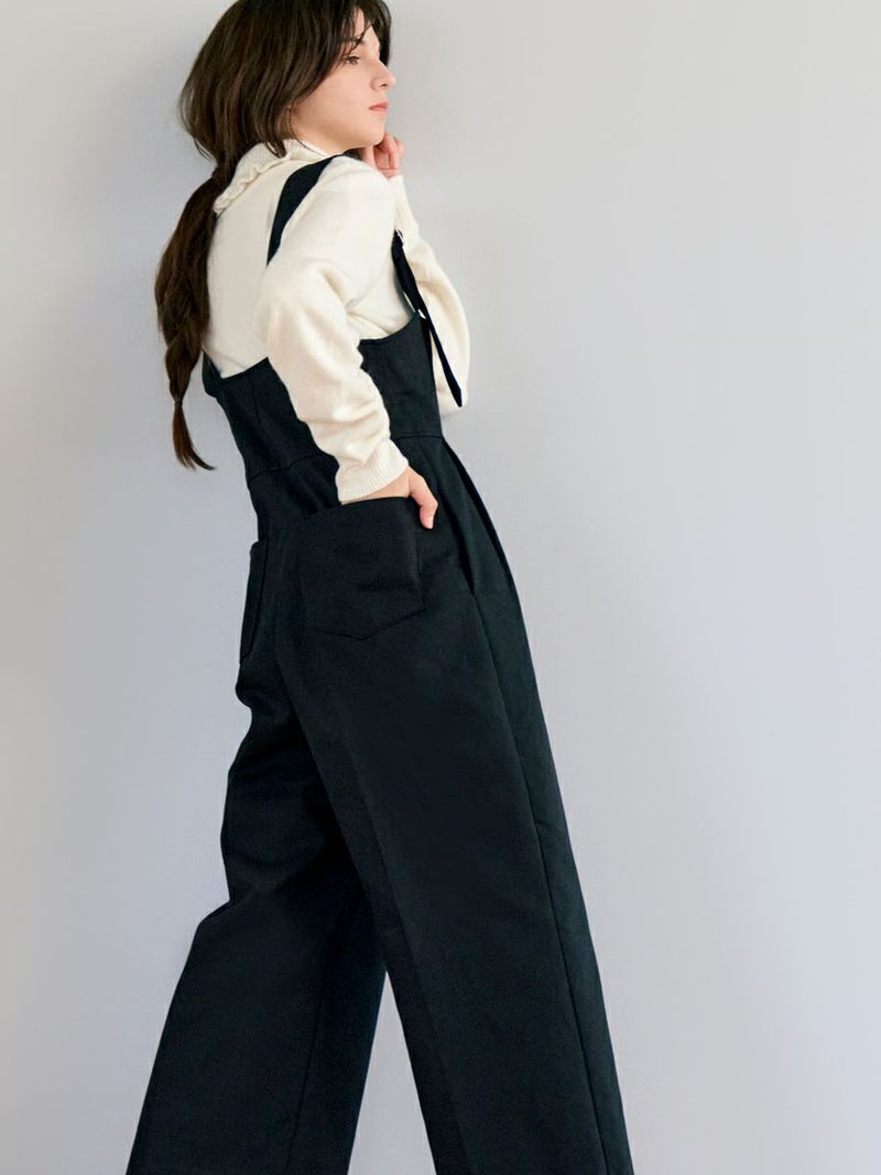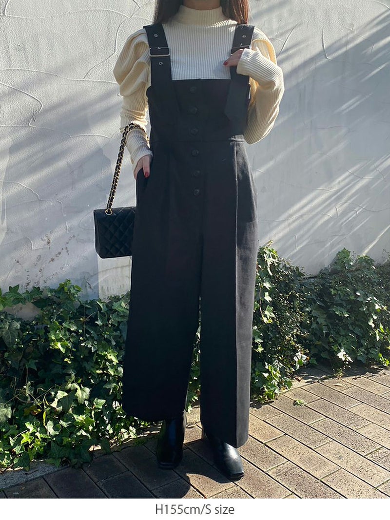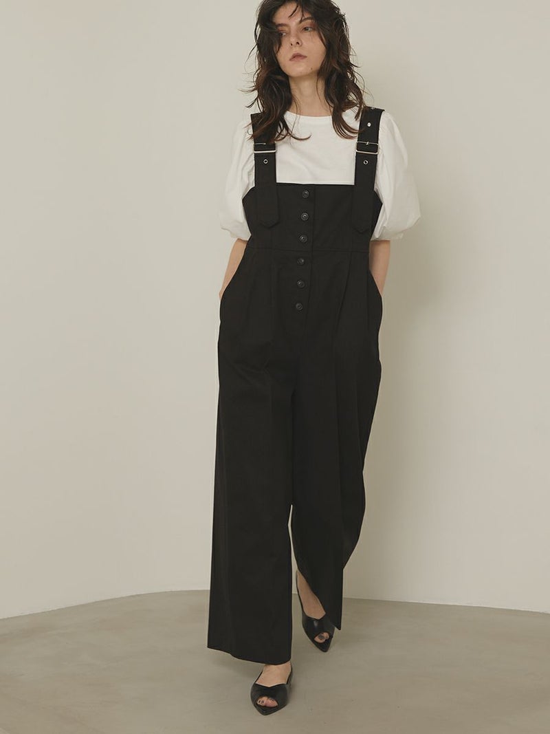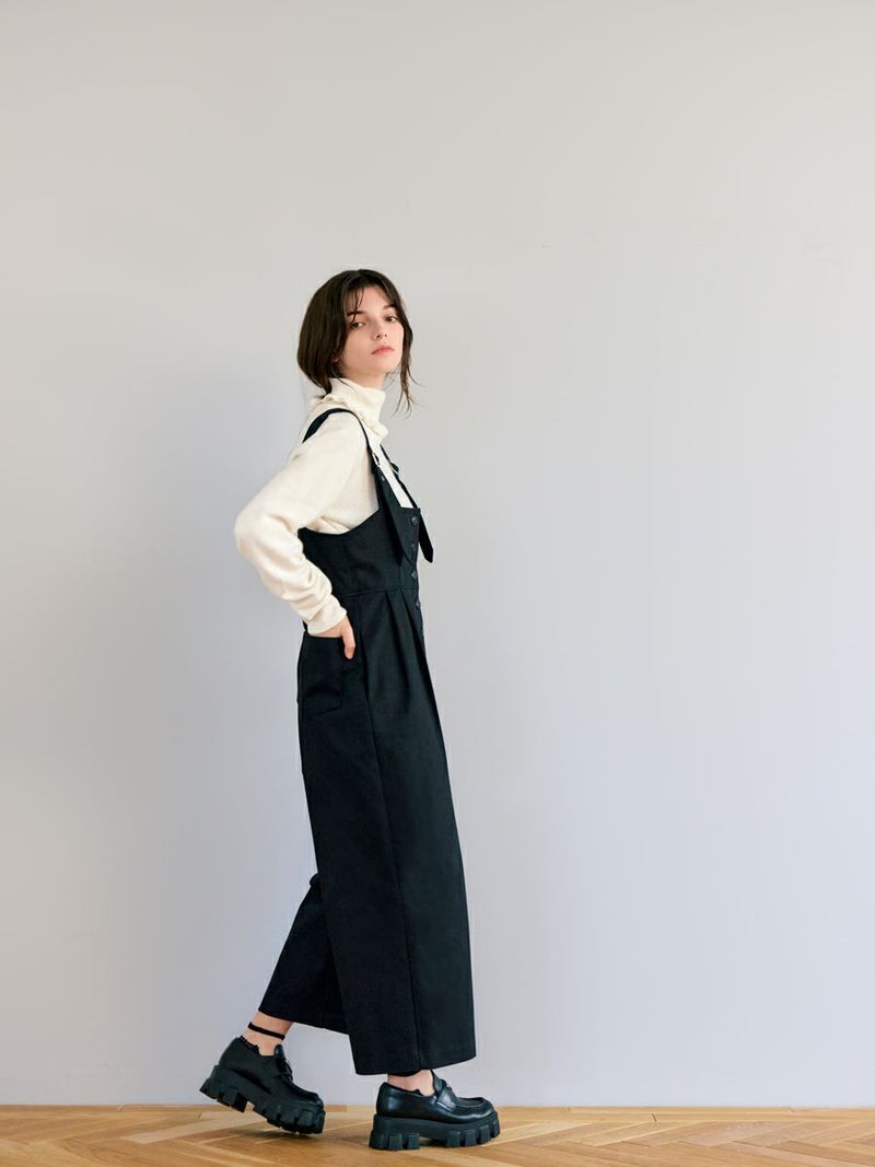 大人な女性のための、ボディーラインを拾わないワイドジャンパーパンツ。