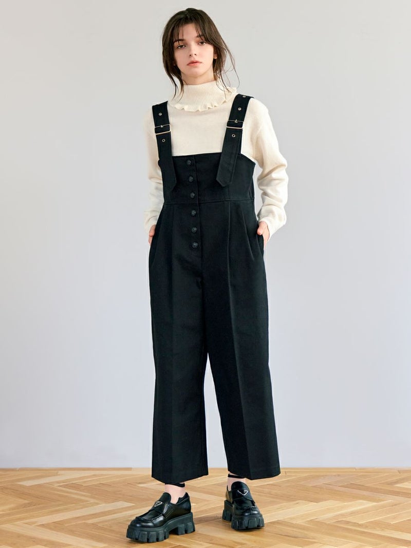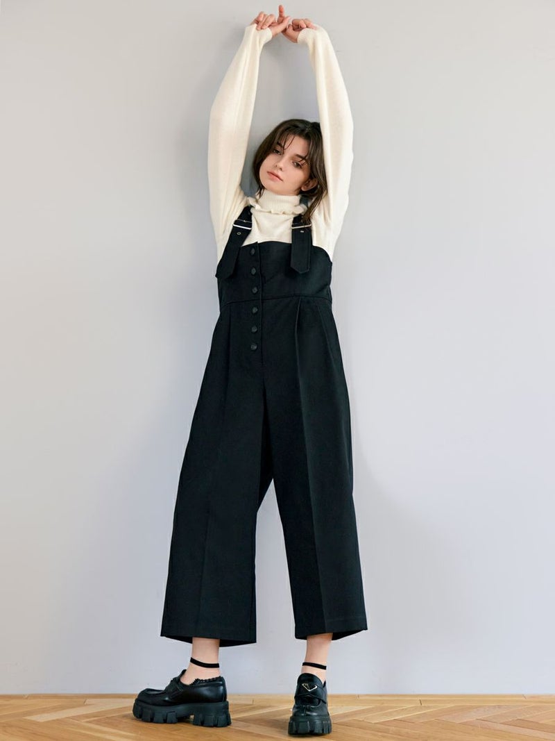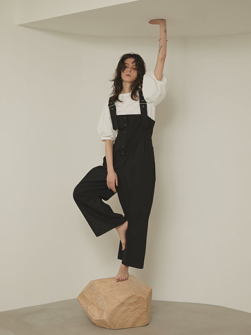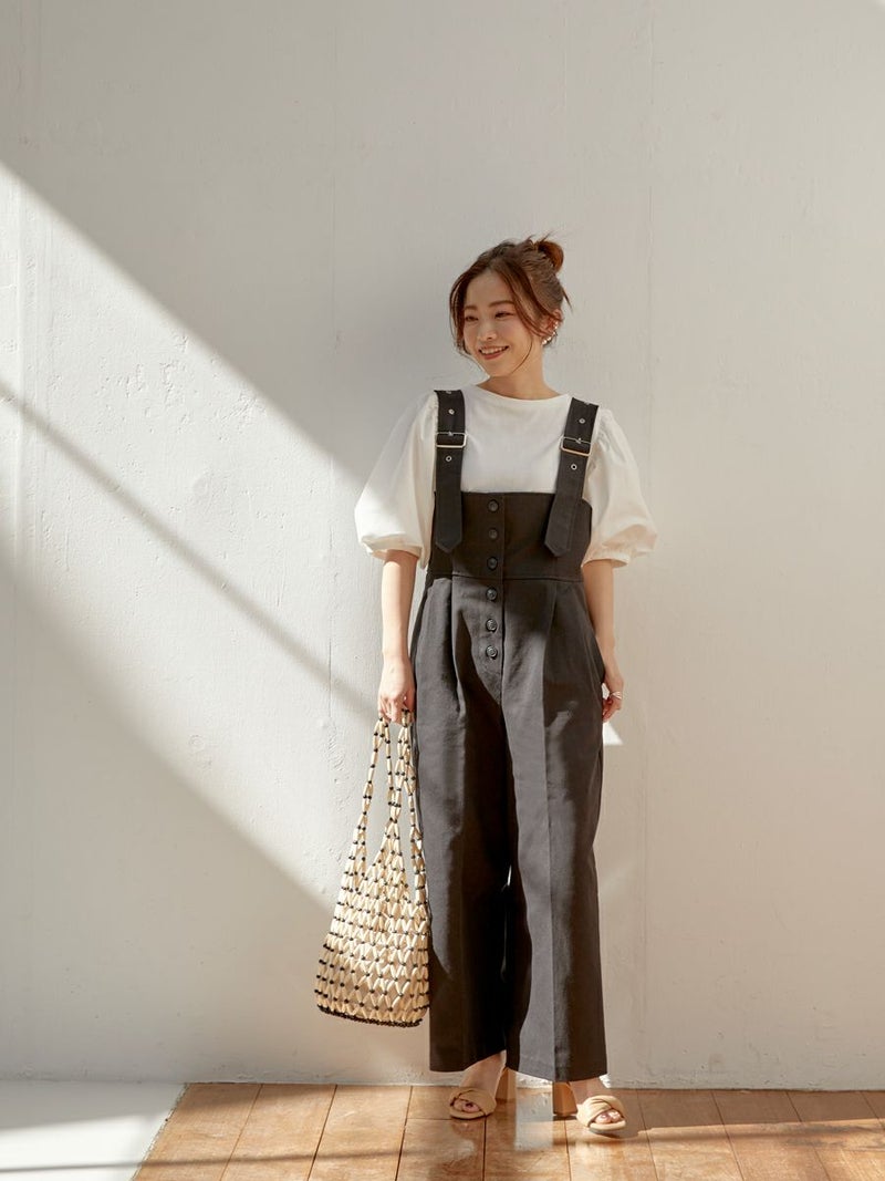 大人な女性のための、ボディーラインを拾わないワイドジャンパーパンツ。