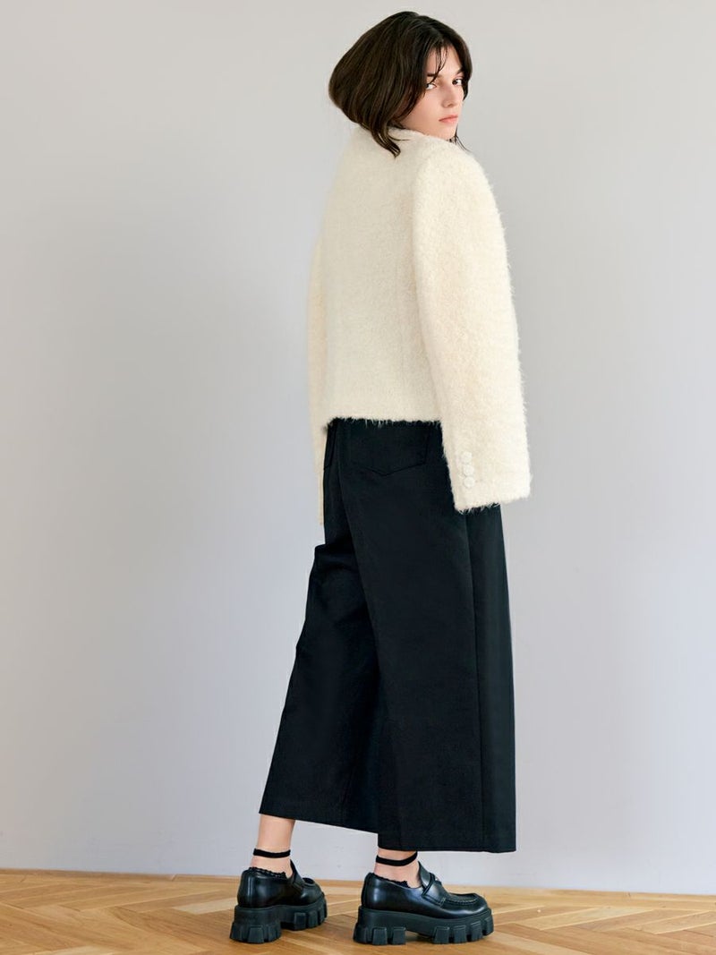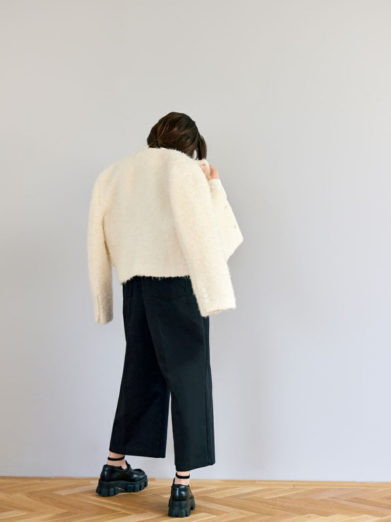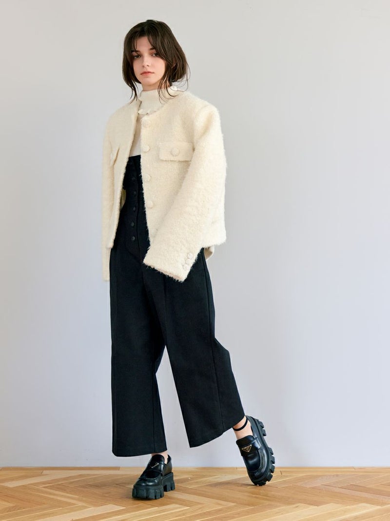 ハイウエスト切り替えやセンターラインとタックが入っているため、スタイルアップが叶う一着です。