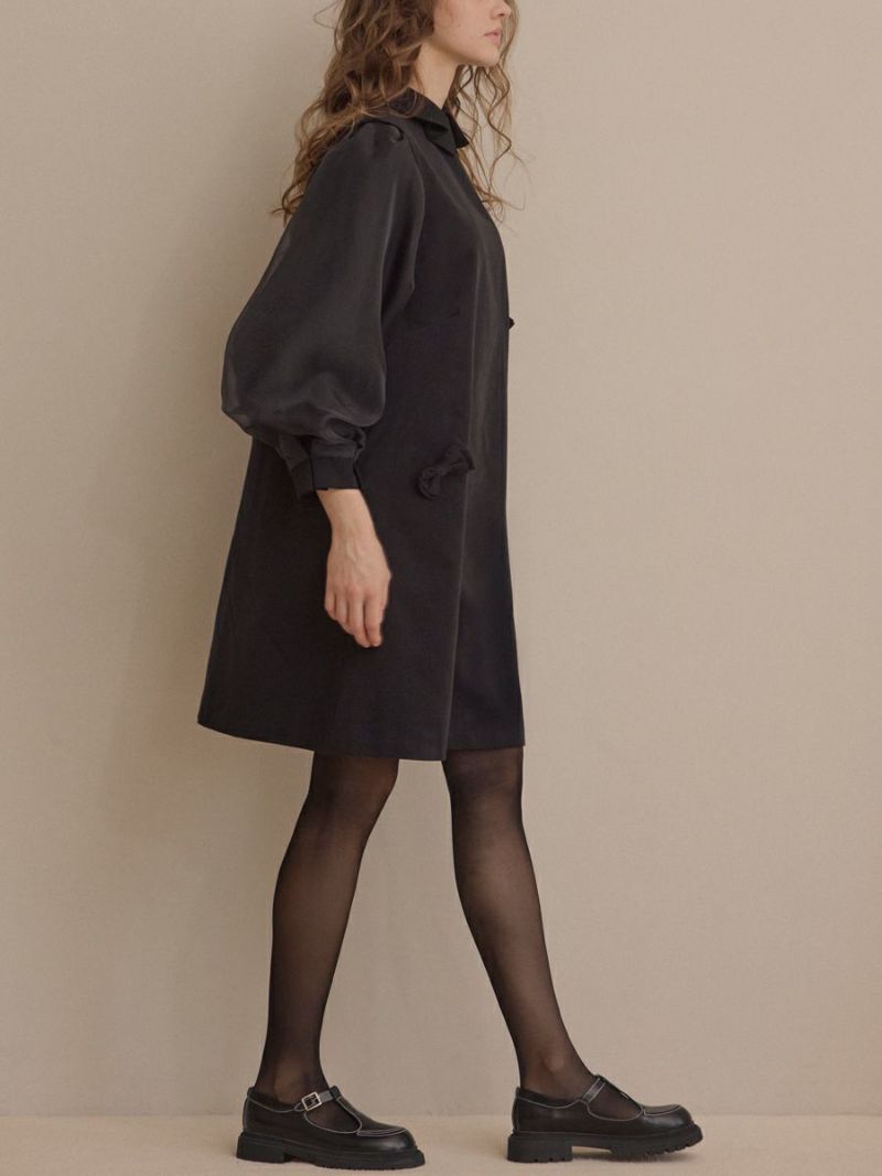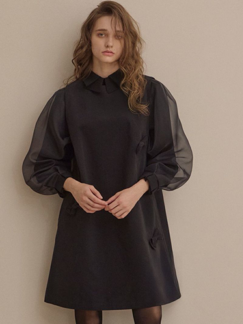シンプルなボックスシルエットのワンピースにリボンを施したクラシカルな一枚。