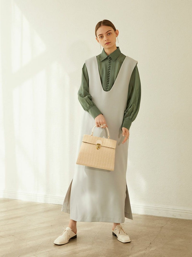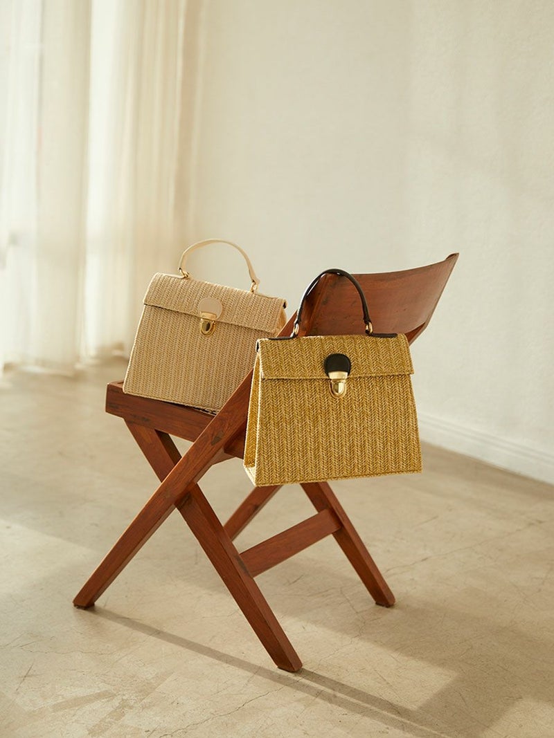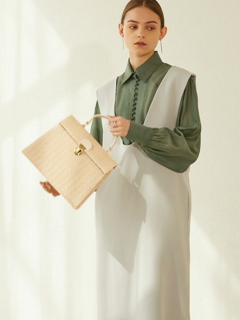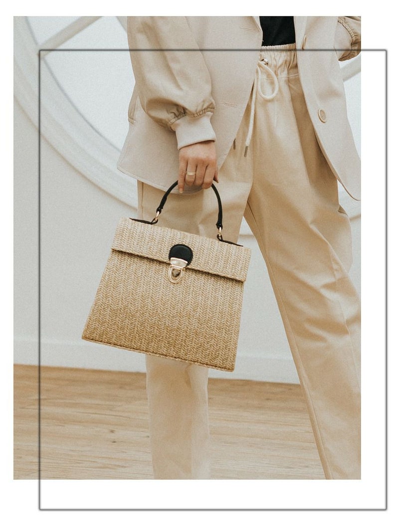 スクエアのフォルムがワンポイントなバスケットバッグは、