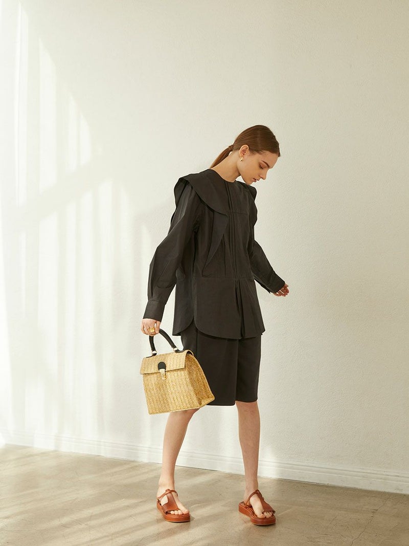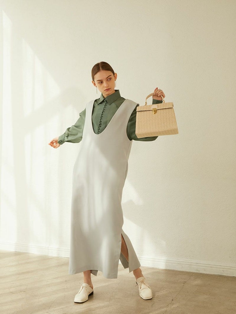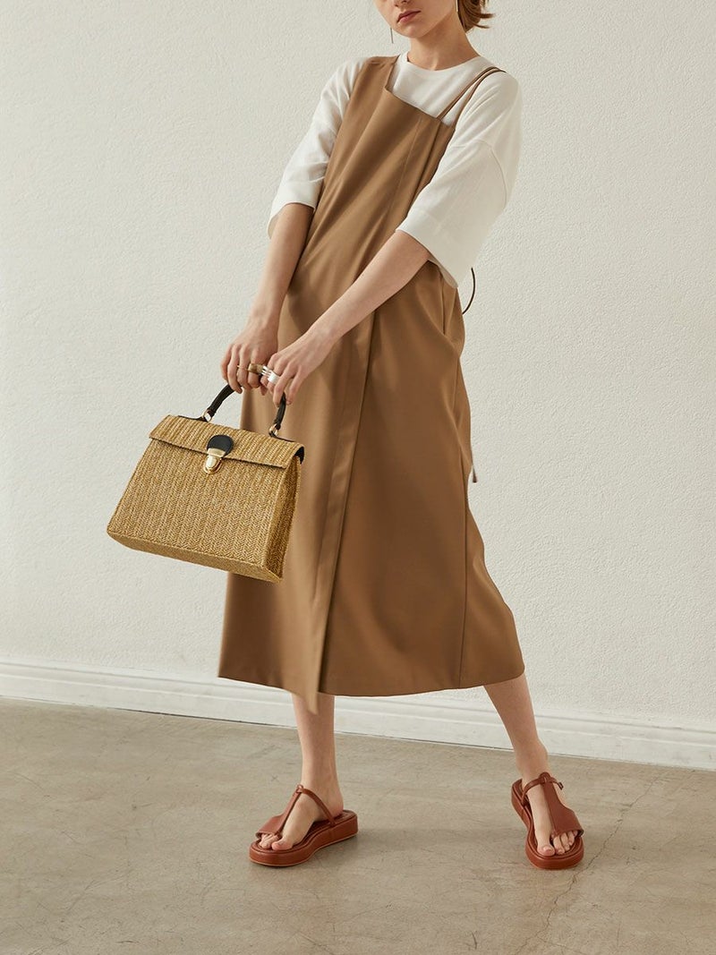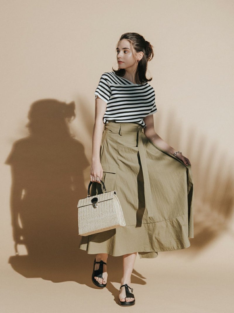 スクエアのフォルムがワンポイントなバスケットバッグは、