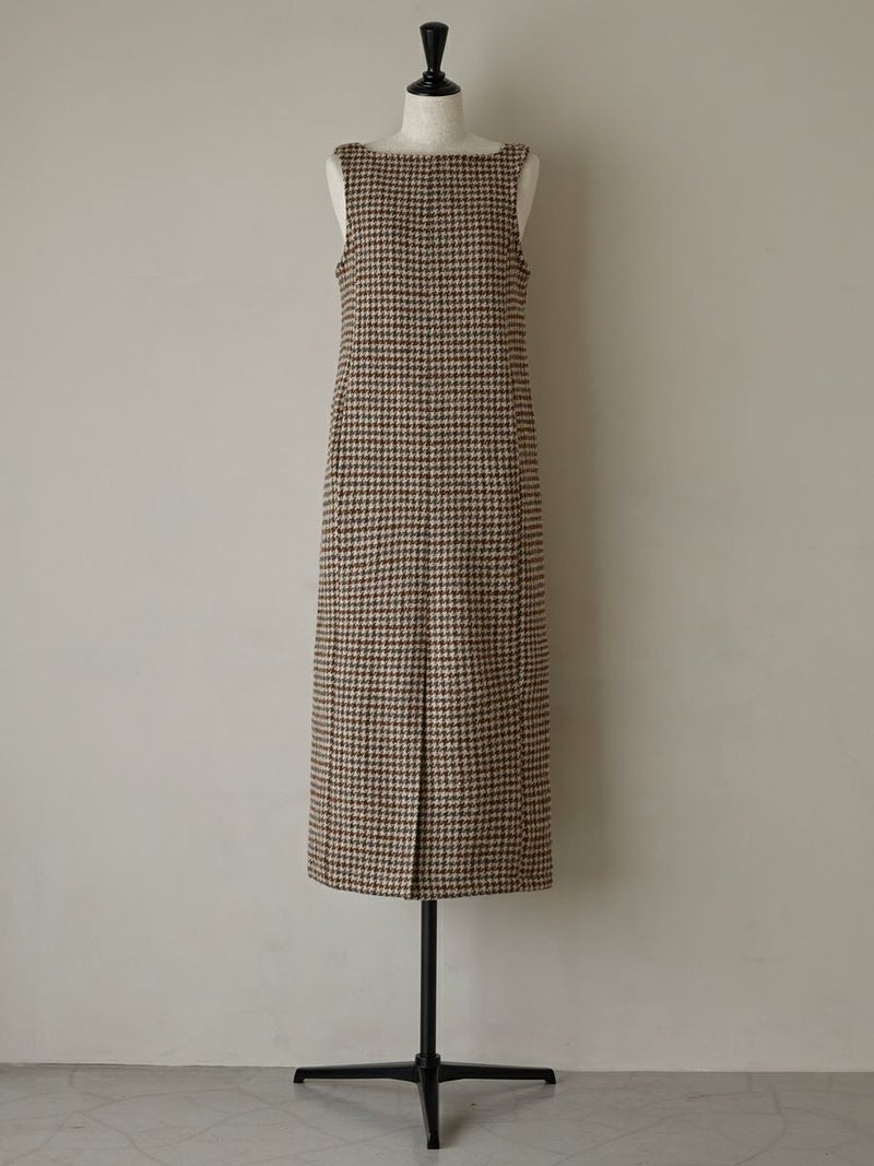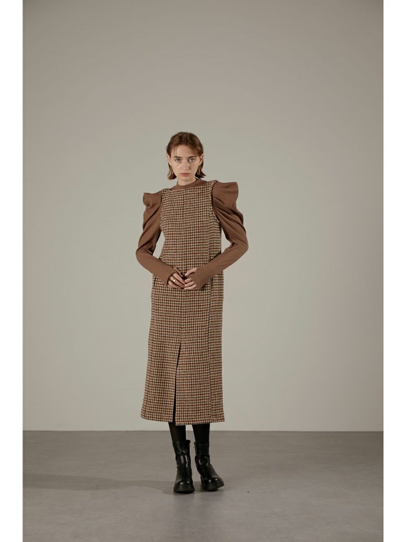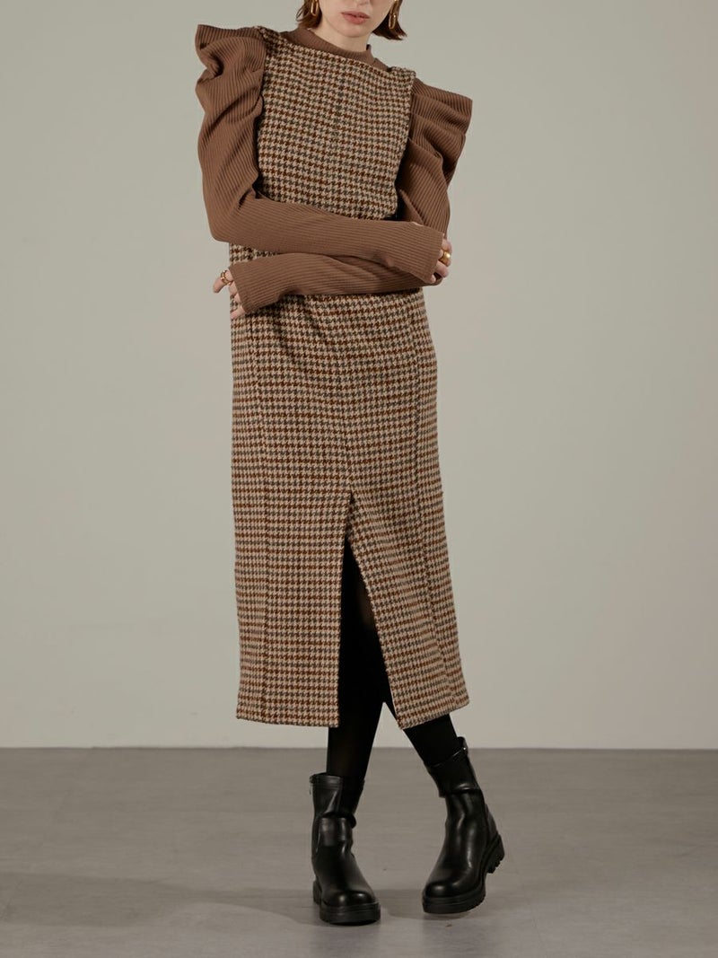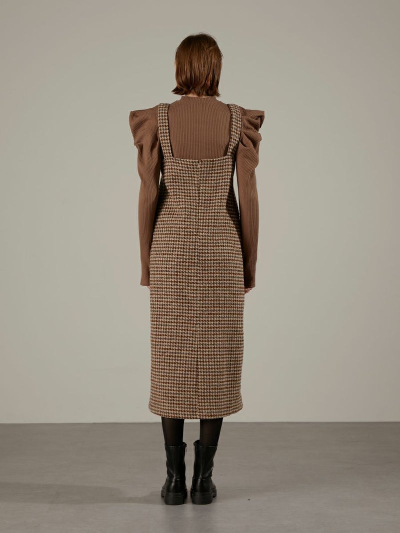 ツイード素材のジャンパーワンピース。