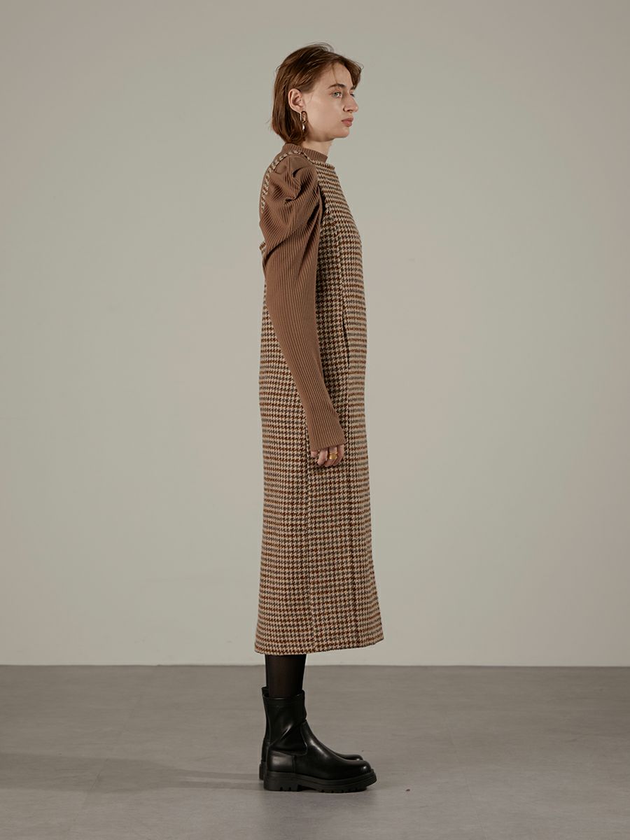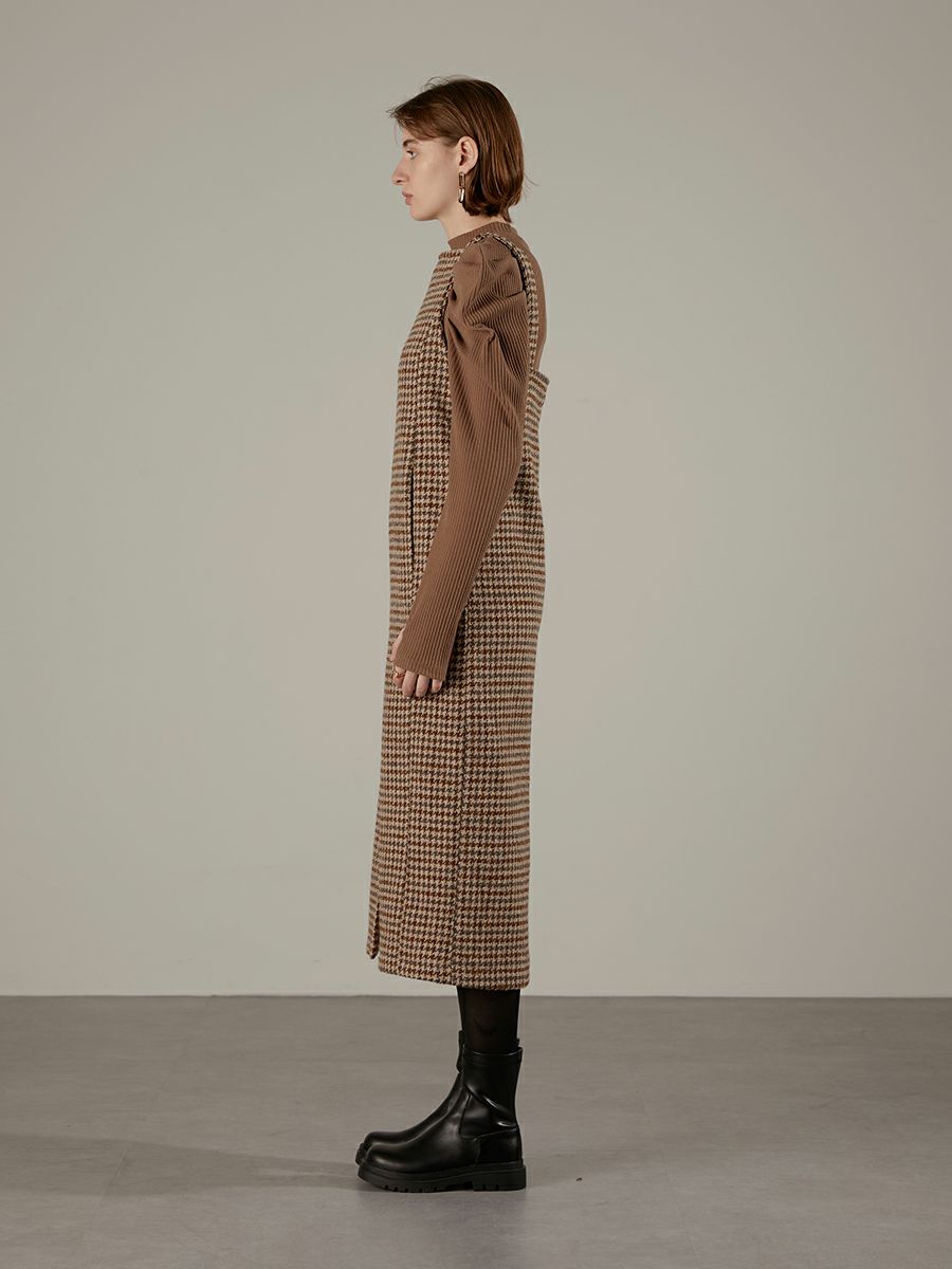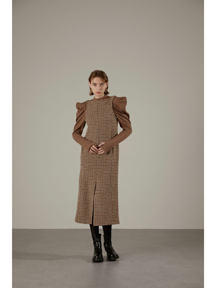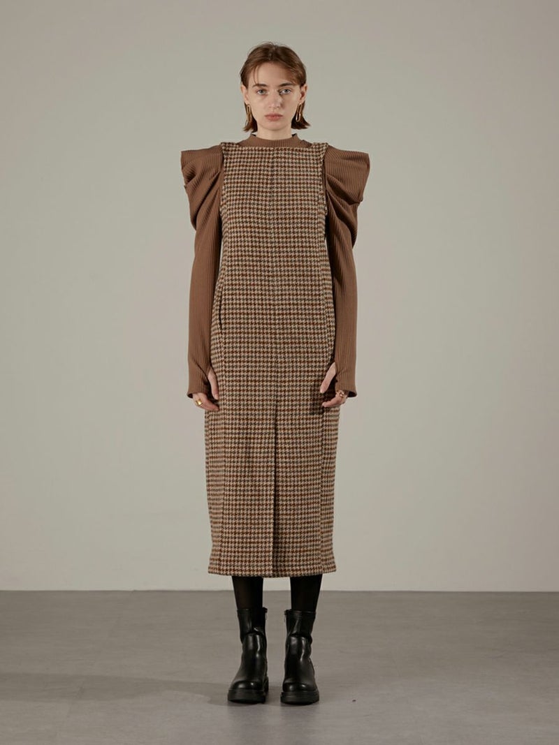 ツイード素材のジャンパーワンピース。