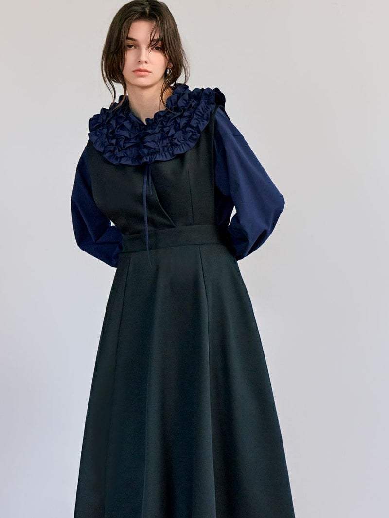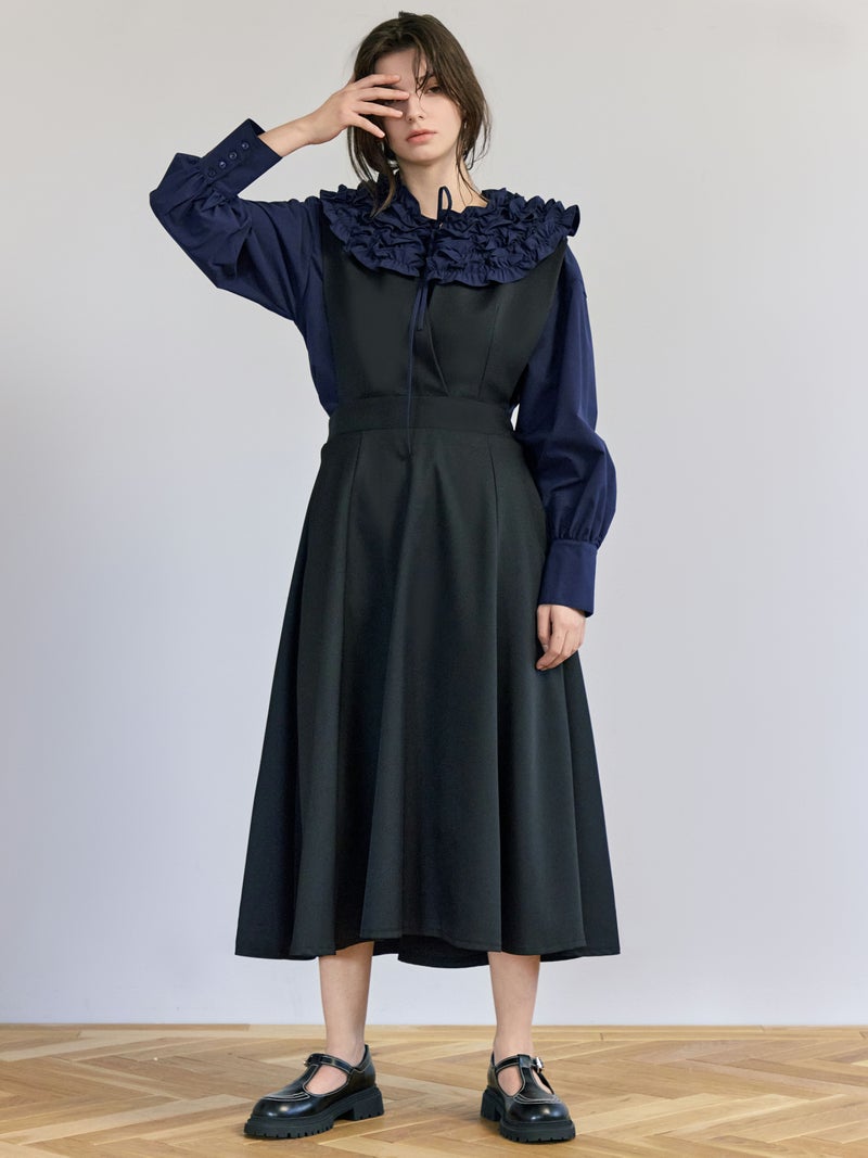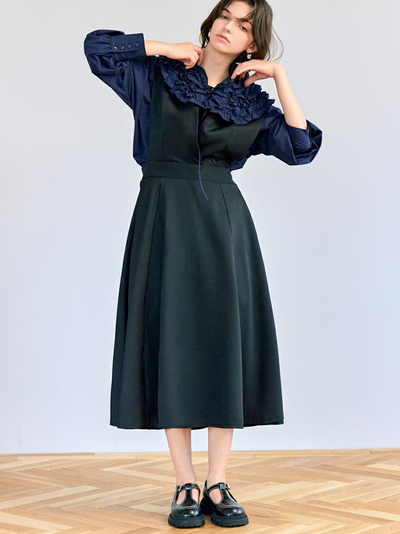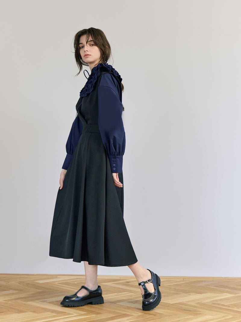 【Vネックジャンパードレス - 1色展開】