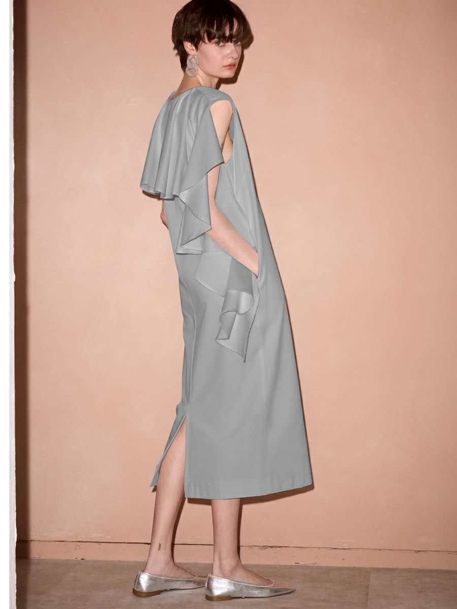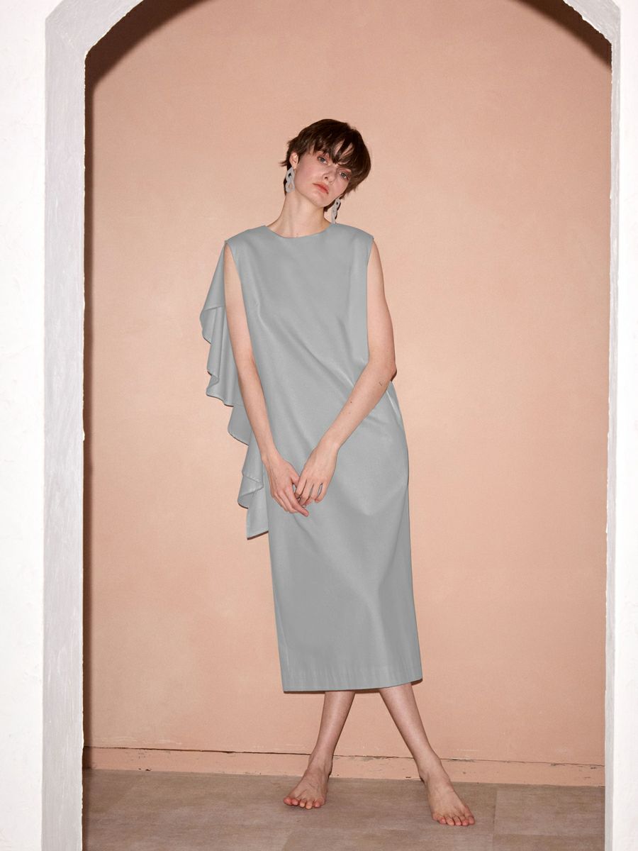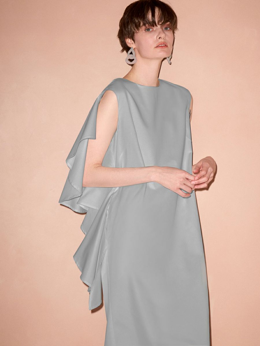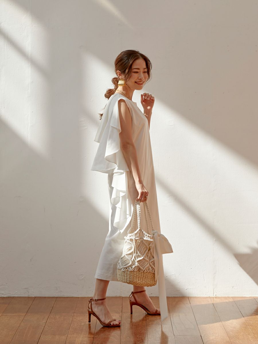 バックスタイルのフリルディティールに拘った贅沢なワンピース。