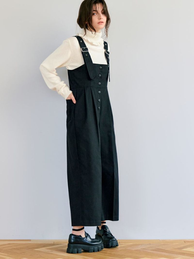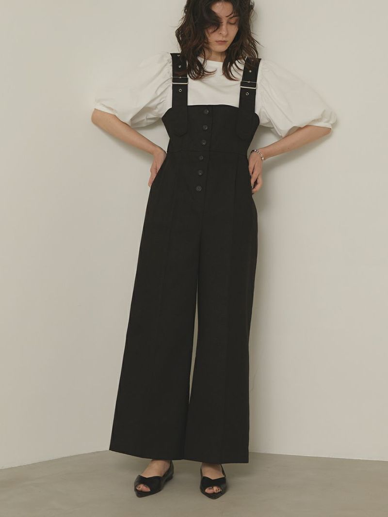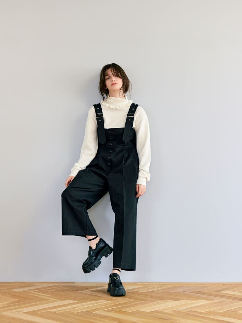 大人な女性のための、ボディーラインを拾わないワイドジャンパーパンツ。