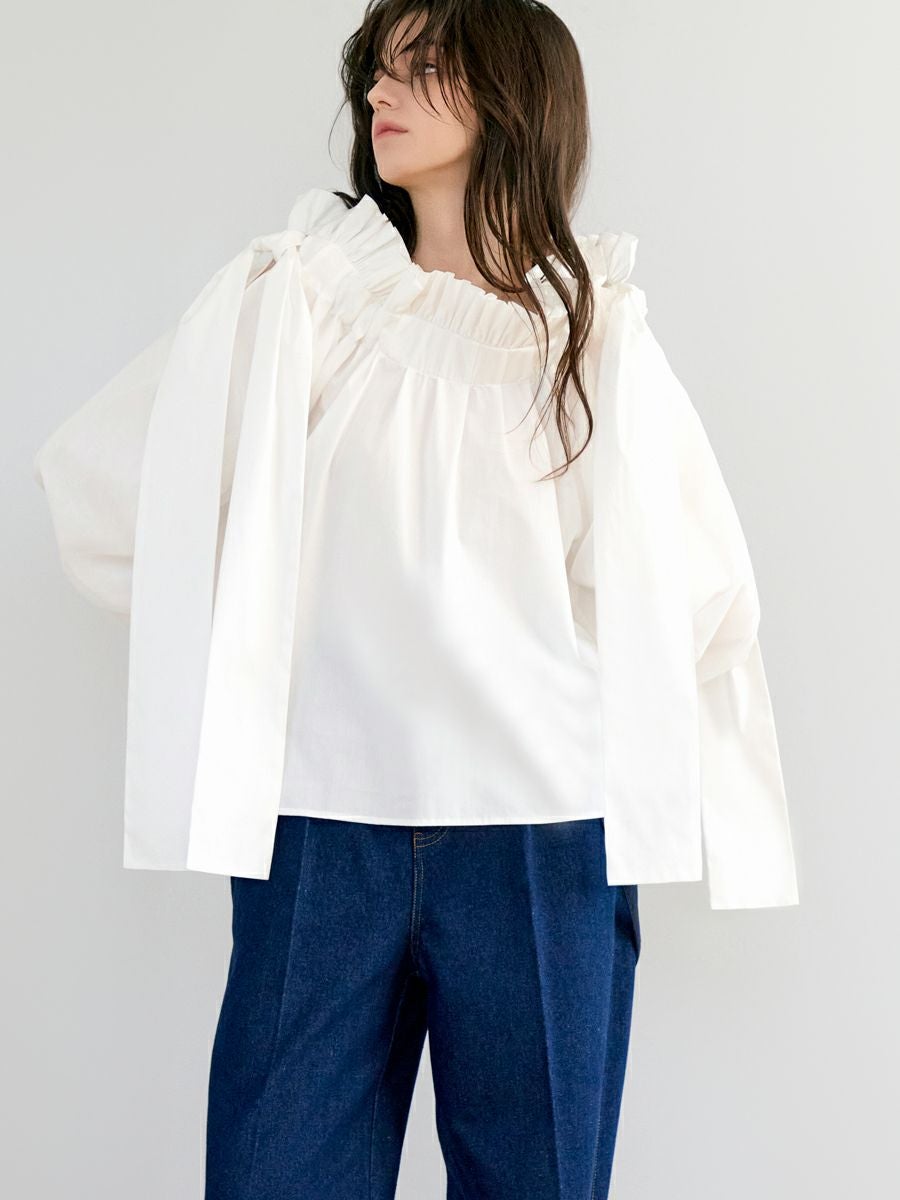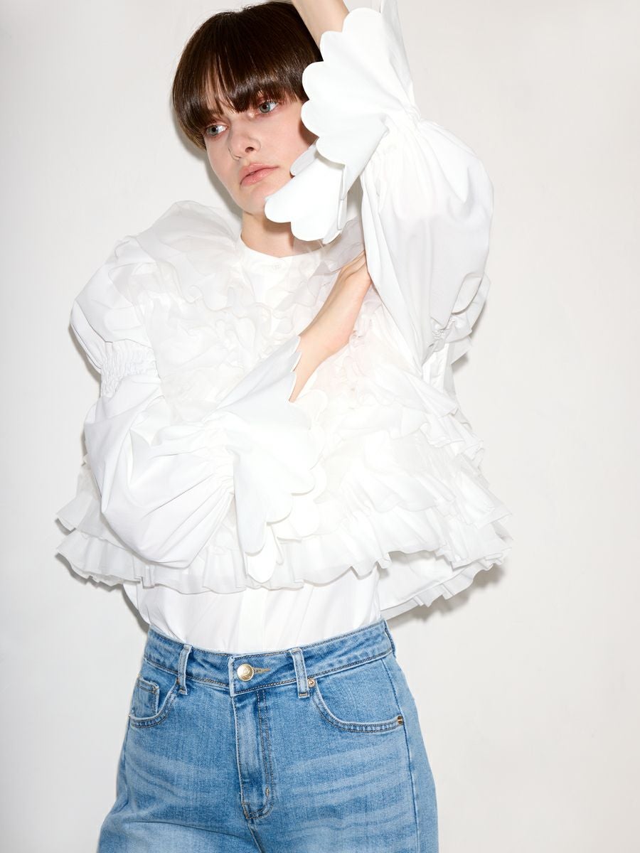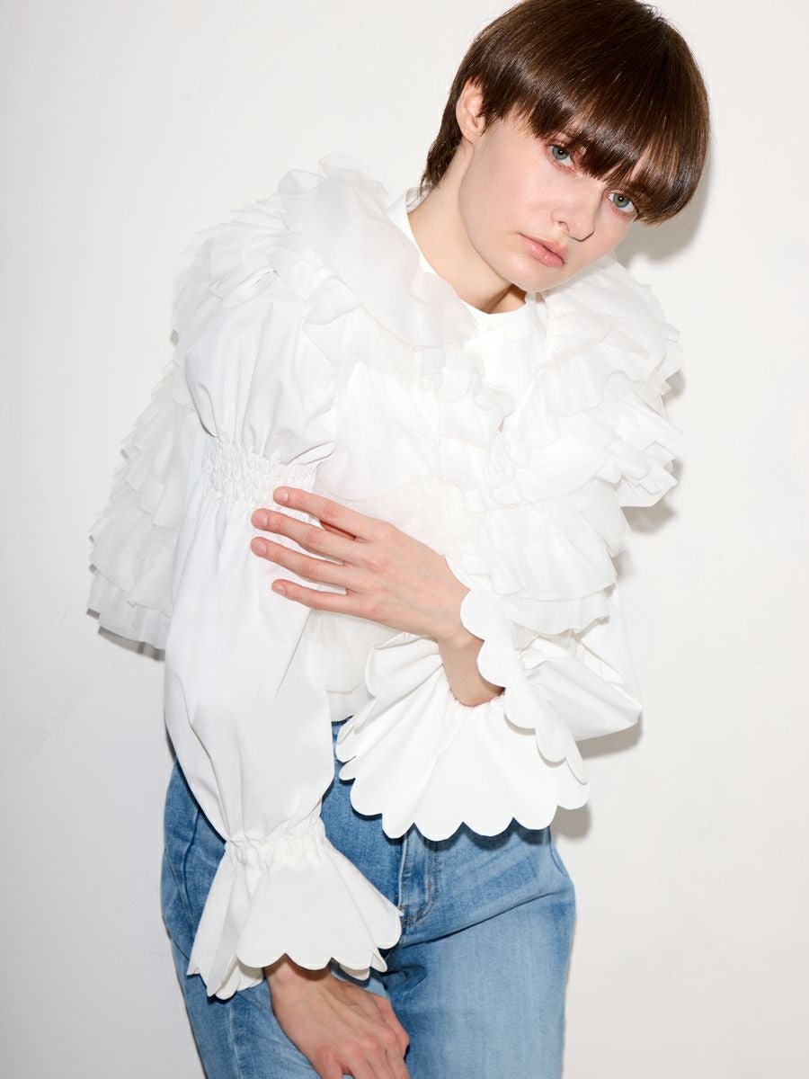 MILLEFEUILLE COLLAR BLOUSE(WHITE)