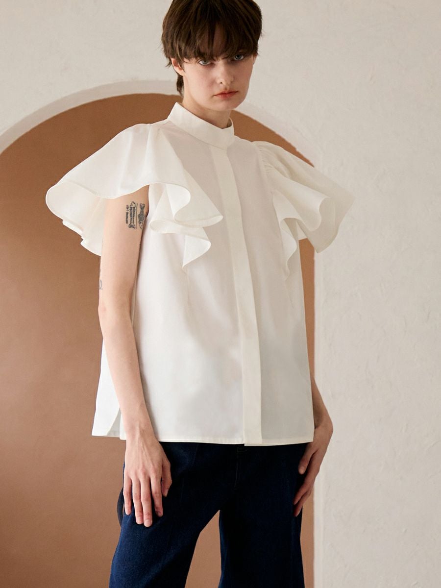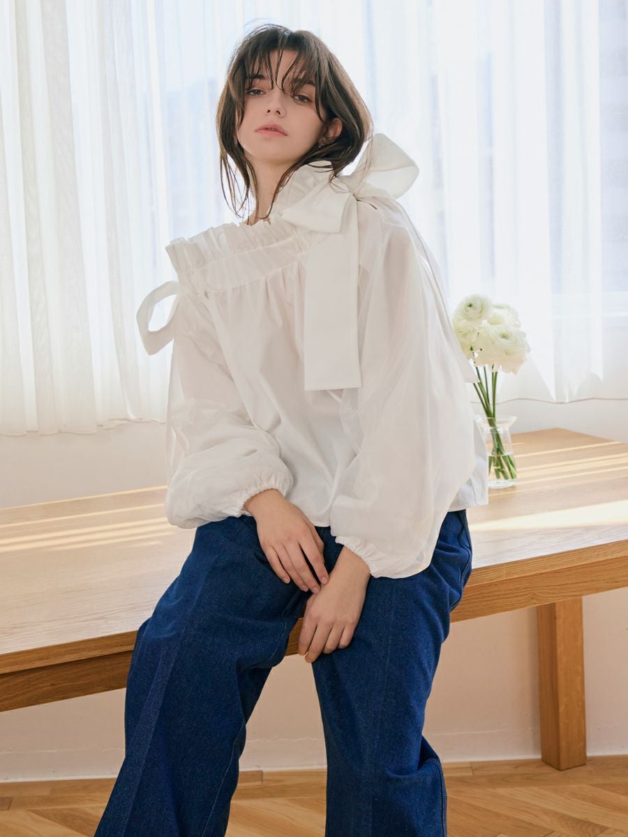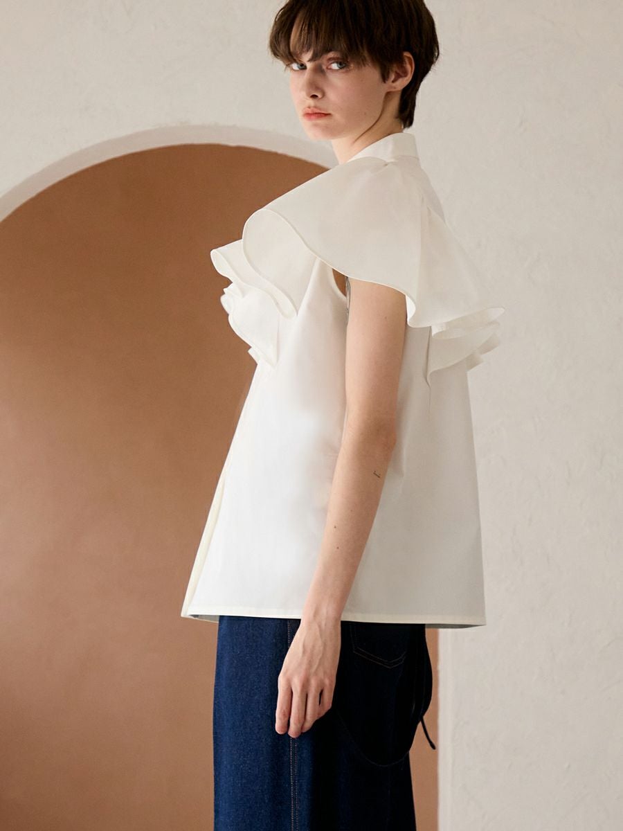MILLEFEUILLE COLLAR BLOUSE(WHITE)