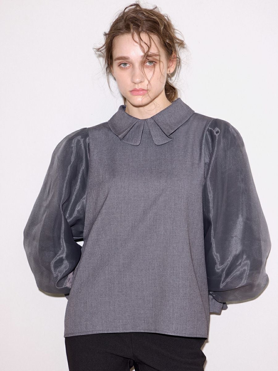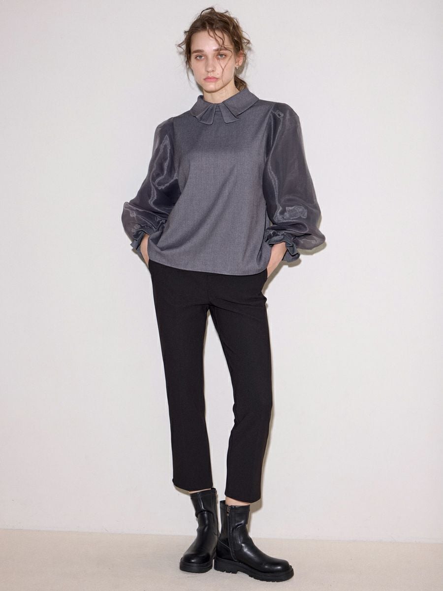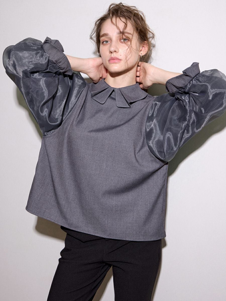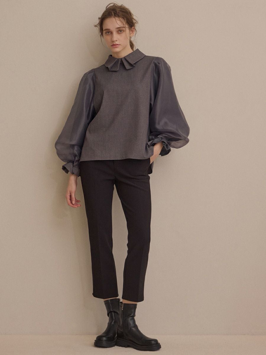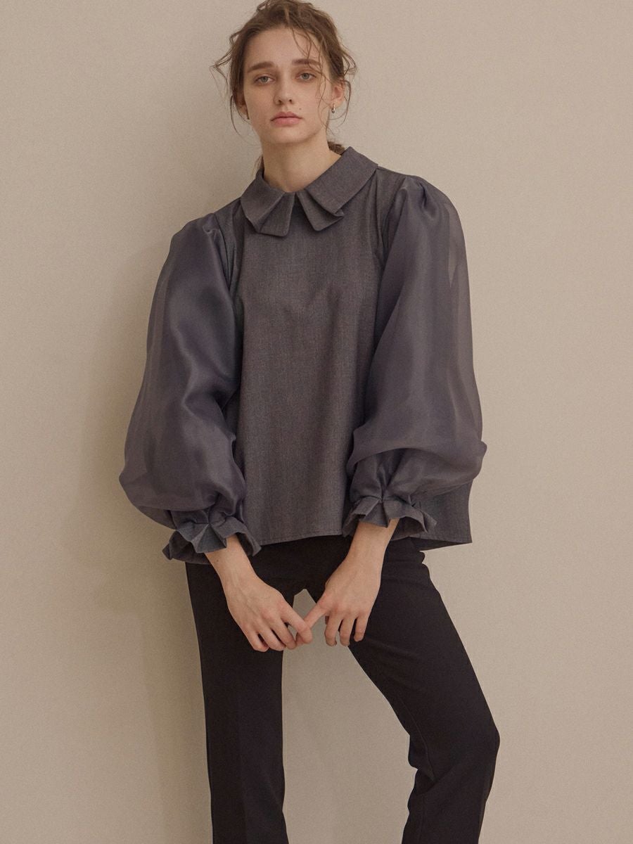 MILLEFEUILLE COLLAR BLOUSE(GRAY)