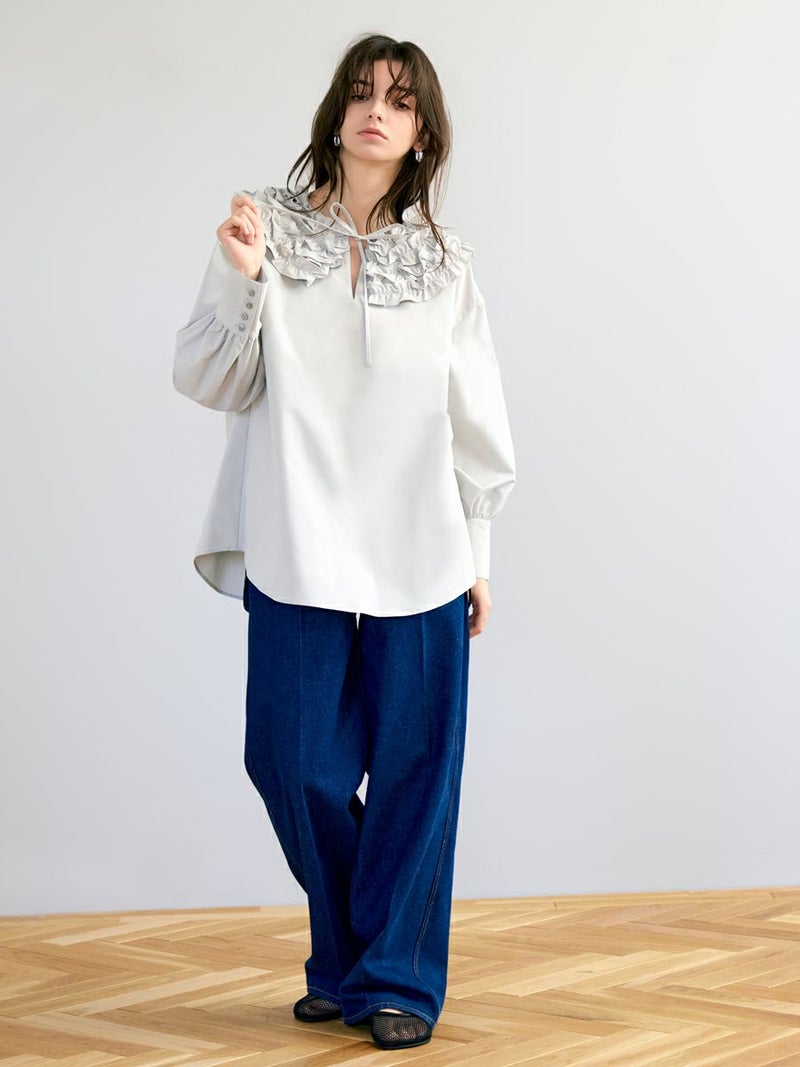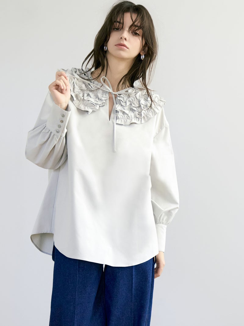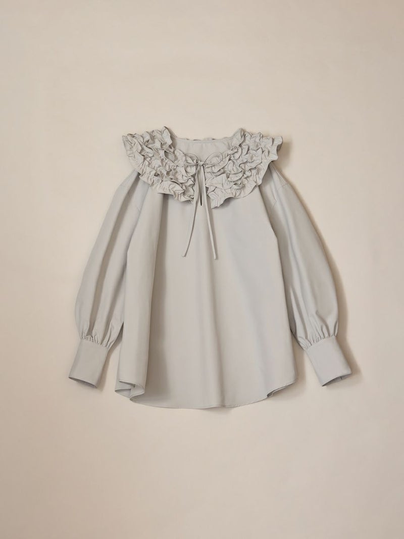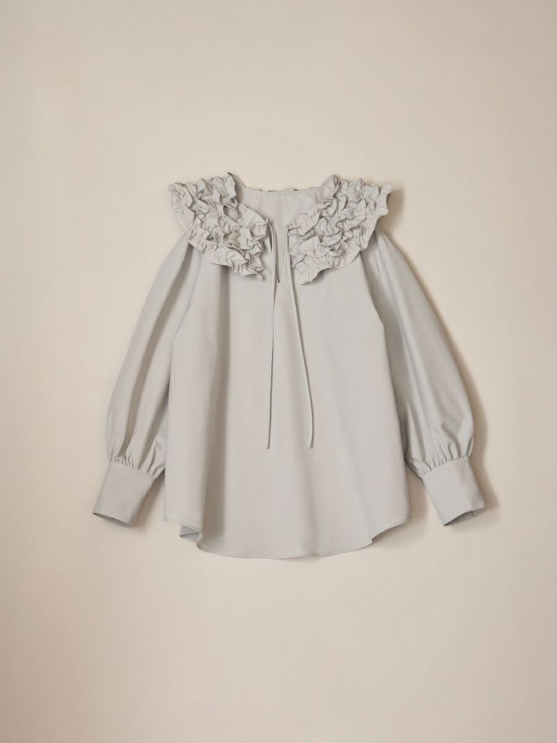 何層にも重なったふわふわのフリルが魅力的な、フランスのお菓子を連想させたミルフィーユカラーブラウス。