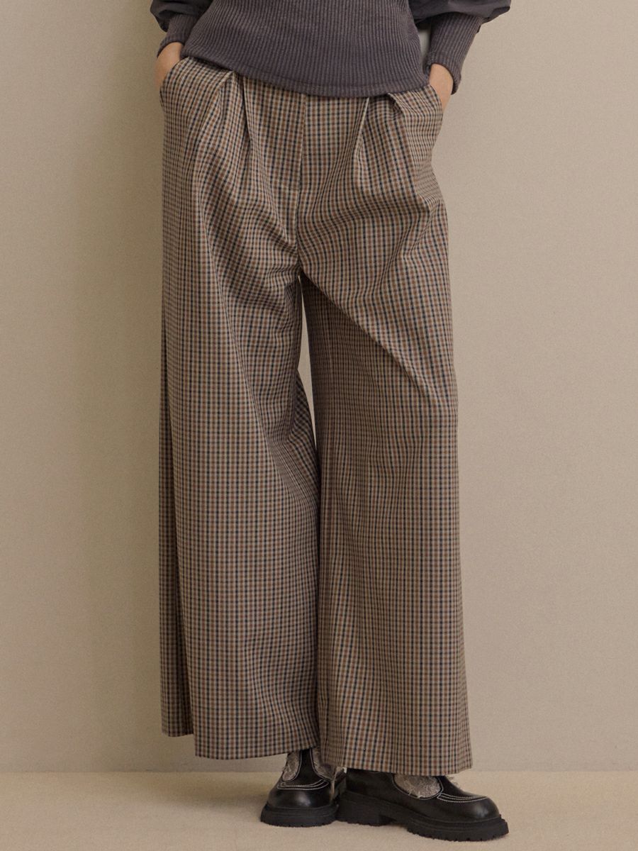 細かいチェックが上品に見せてくれるため、きちんとした雰囲気とトレンド感を両立した1着です。